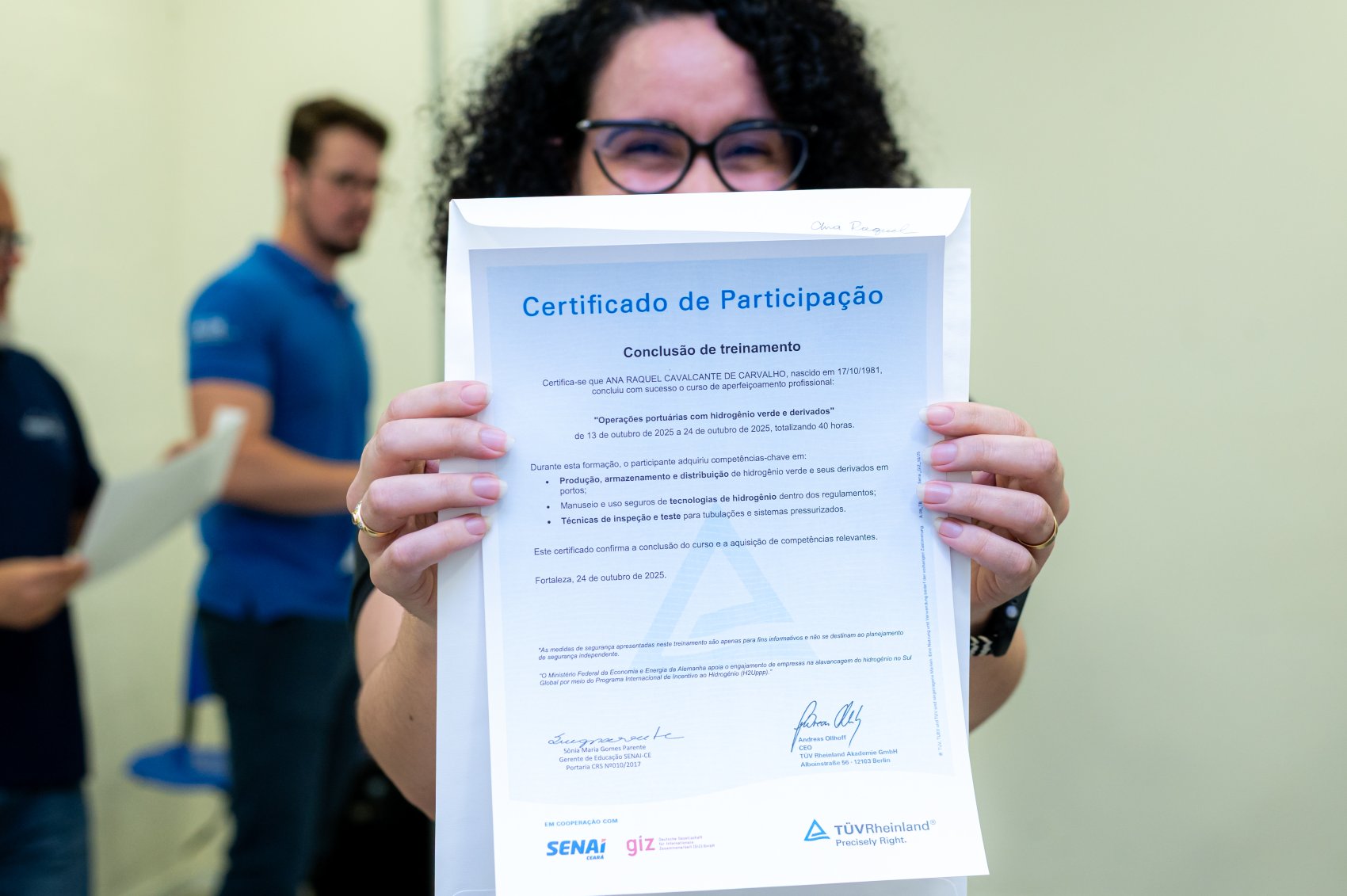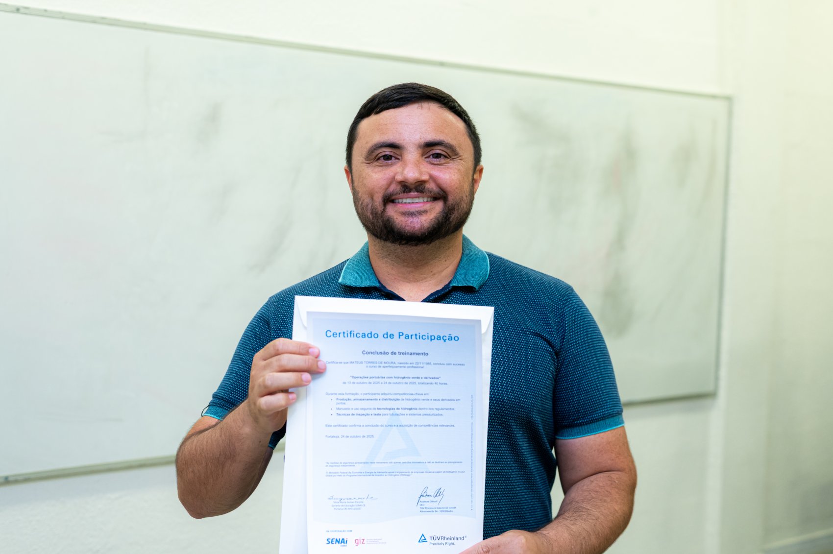 “Estamos celebrando o sucesso de uma formação na área portuária, resultado de uma parceria exemplar entre SENAI Ceará, GIZ e TÜV Rheinland. Tivemos 100% de aprovação e isso demonstra o empenho de todos os envolvidos. Esse projeto busca formar profissionais globais, comprometidos com eficiência, sustentabilidade e segurança. A cooperação internacional e a troca de experiências são essenciais para o futuro do setor portuário brasileiro, que precisa se reinventar diante das novas demandas energéticas”, afirmou.