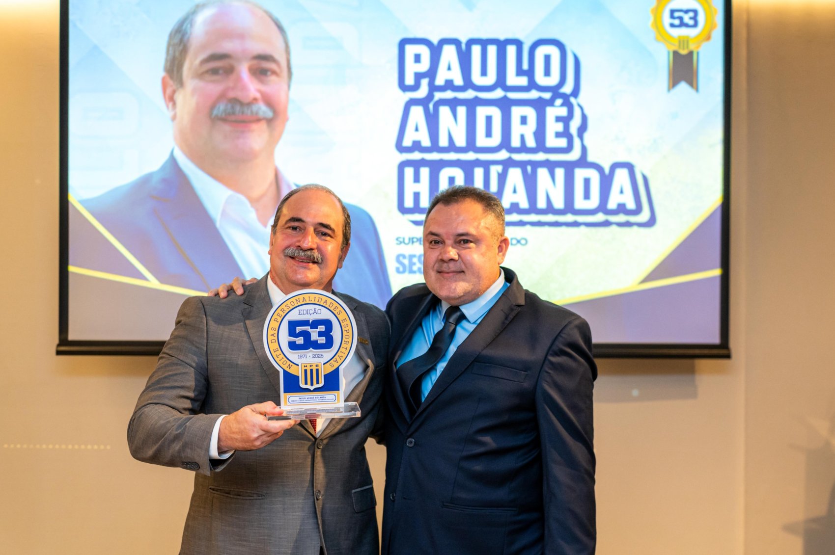O Presidente da Federação das Indústrias do Estado do Ceará (FIEC), Ricardo Cavalcante, foi um dos homenageados na noite desta segunda-feira (08/12) ao receber a Comenda Jornalista Alan Neto durante a 53ª edição da Noite das Personalidades Esportivas, realizada na Casa da Indústria. A cerimônia celebrou os destaques do ano no cenário esportivo cearense em diversas categorias e reuniu dirigentes, atletas, profissionais da imprensa e convidados. O secretário de Estado da Casa Civil do Governo do Ceará, Chagas Vieira, e o Diretor Regional do SENAI Ceará e Superintendente do SESI Ceará, Paulo André Holanda, também foram agraciados.