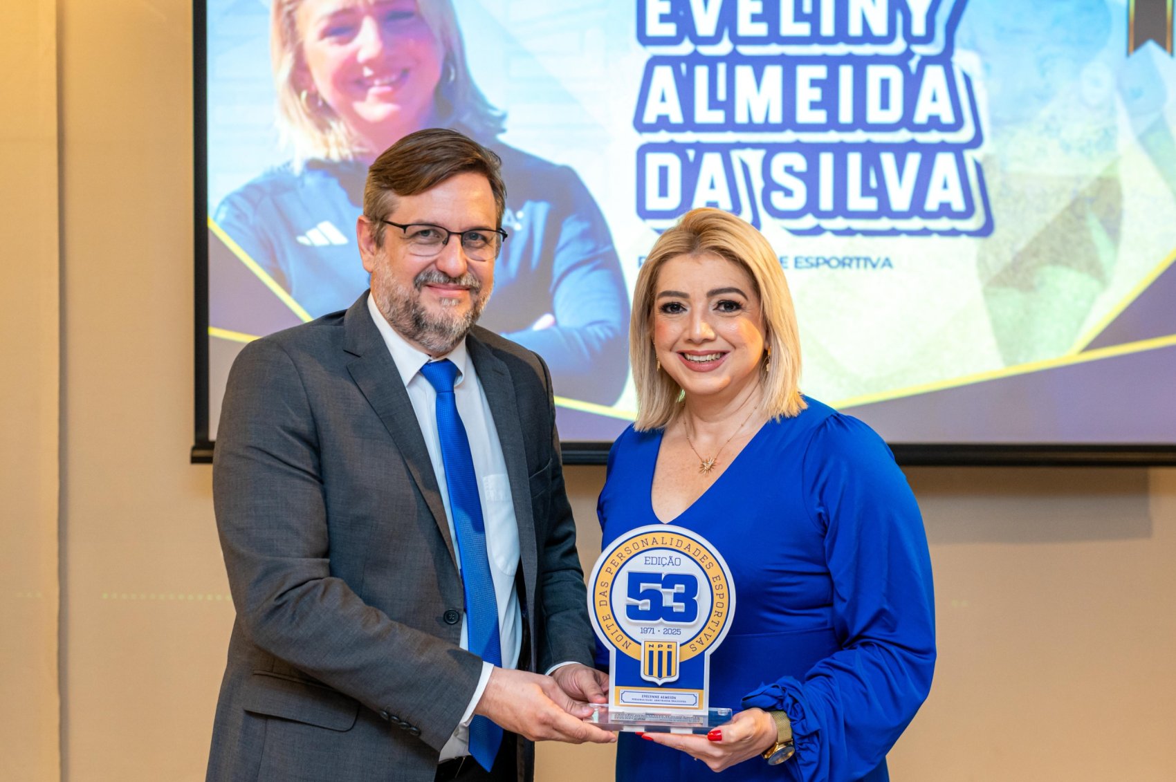 Uma das principais homenagens da noite foi concedida a Eveliny Almeida, ex-árbitra Fifa, eleita a Personalidade Esportiva do Ano. Ela voltou a ser destaque no evento pela segunda vez, após ter entrado para a história como a primeira mulher cearense a integrar o quadro da entidade internacional.