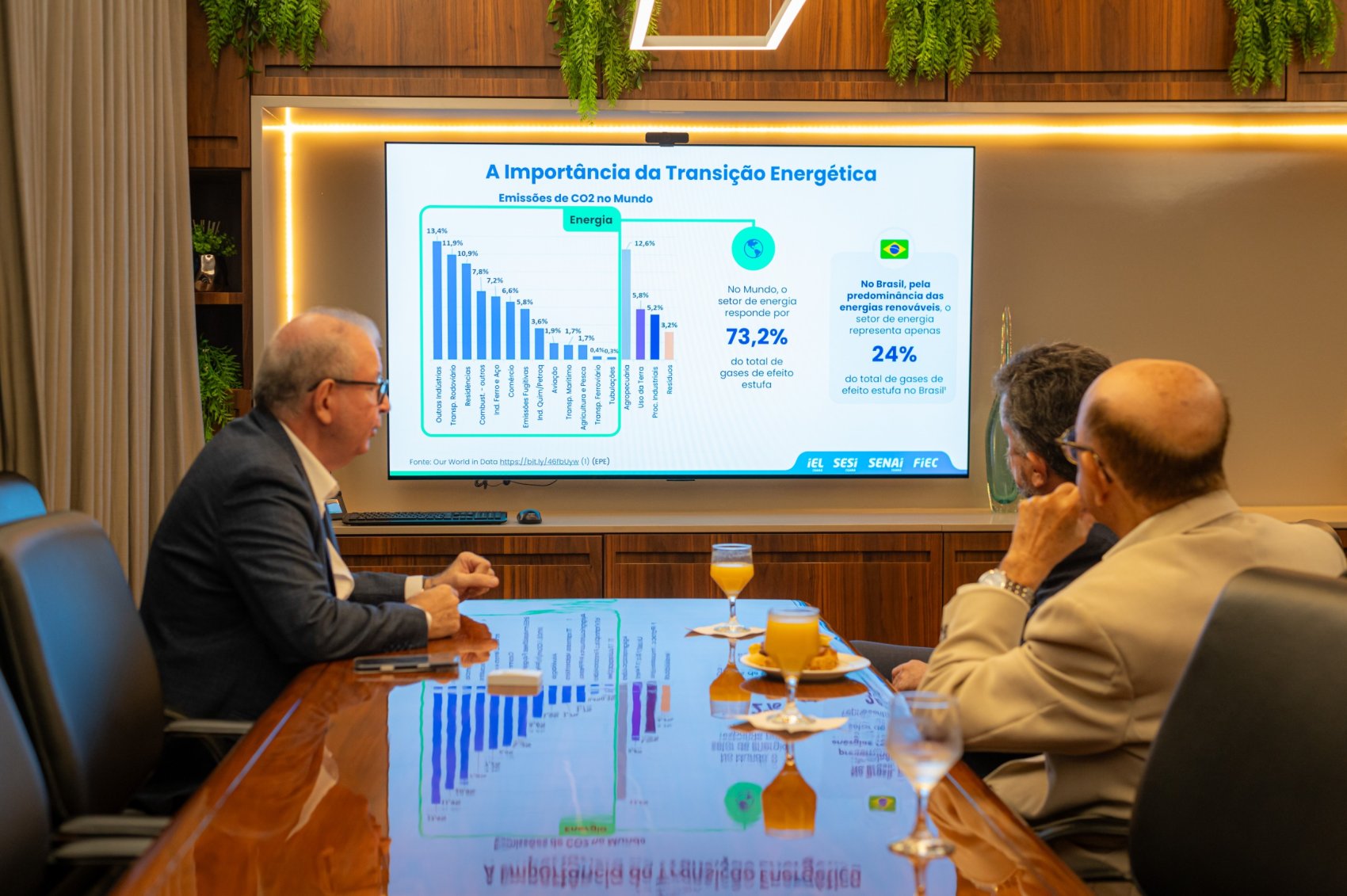 Cavalcante apresentou a atuação da FIEC nesse cenário, com ênfase nos estudos conduzidos pelo Observatório da Indústria Ceará sobre a cadeia produtiva do Hidrogênio Verde e Data Centers e suas oportunidades no Ceará. O embaixador ressaltou a relevância das informações compartilhadas e a consistência técnica dos dados apresentados, destacando a energia e o comprometimento do presidente da FIEC.