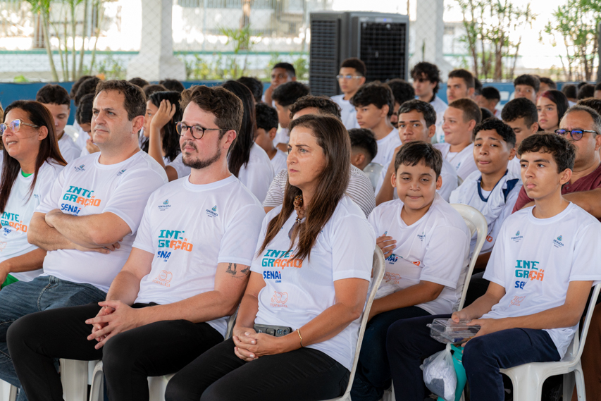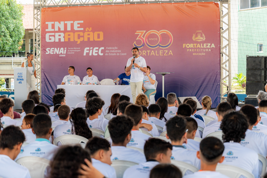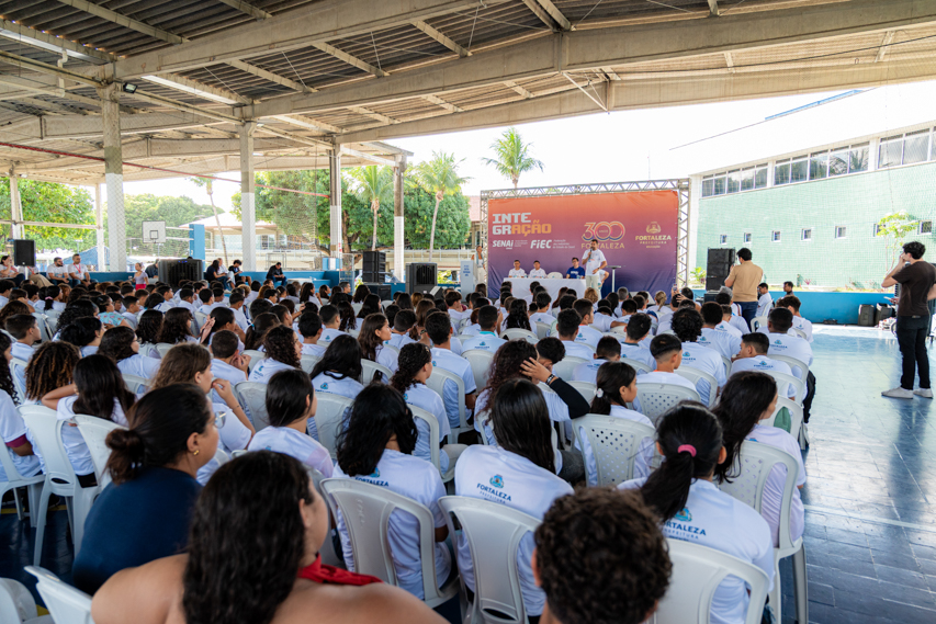 Entre expectativas, descobertas e novos caminhos, a tarde desta segunda-feira (23/03), na unidade do SENAI Parangaba, foi marcada por um passo importante na trajetória de jovens da rede pública de Fortaleza. Foi nesse cenário que o Serviço Nacional de Aprendizagem Industrial (SENAI Ceará), em parceria com a Secretaria Municipal da Educação, lançou o Projeto Integração SENAI, iniciativa do programa Aprender Mais voltada à formação profissional de estudantes do 9º ano.