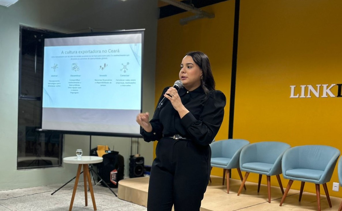 Durante o encontro, a analista de Comércio Exterior do CIN, Ester Vasconcelos, ministrou a palestra “Um Mercado do Tamanho do Mundo”, na qual apresentou o potencial exportador do Ceará e destacou a importância de desenvolver uma cultura de internacionalização entre empreendedores locais. A apresentação trouxe reflexões sobre o papel da inovação, da cooperação e da visão global na expansão de negócios para novos mercados.