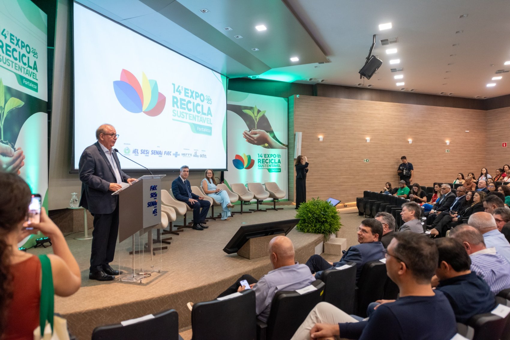 A 14ª edição da Exporecicla Sustentável Fortaleza abriu nesta quinta-feira (27/11) dois dias dedicados à economia circular, à inovação na gestão de resíduos e à valorização de práticas sustentáveis. Promovido pelo Sindicato das Empresas de Reciclagem de Resíduos Sólidos, Domésticos e Industriais do Estado do Ceará (Sindiverde), o encontro ocorre na Casa da Indústria e reúne representantes do setor produtivo, lideranças ambientais, gestores públicos, instituições acadêmicas e empresas do segmento. A iniciativa conta com patrocínio do SESI Ceará e da Hattz Veículos Elétricos, além do apoio do IEL Ceará, SENAI Ceará, Federação das Indústrias do Estado do Ceará (FIEC), Sebrae, Governo do Estado, Cagece e IFCE.