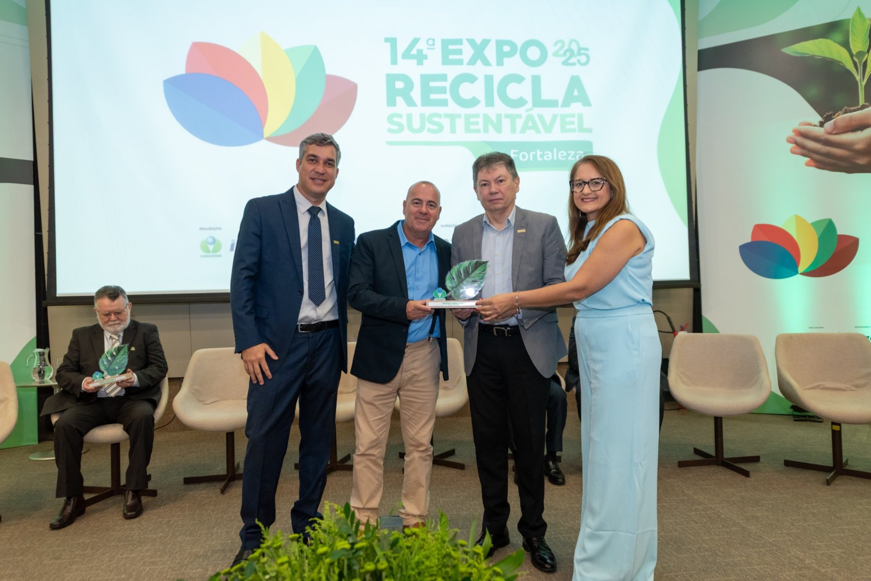 Na continuidade da cerimônia, foi entregue a Placa-Homenagem ao diretor financeiro da FIEC e presidente da Associação Caatinga, Edgar Gadelha, pelo trabalho dedicado à conservação ambiental e à proteção do bioma. A Ordem dos Advogados do Brasil – Secção Ceará também recebeu reconhecimento, representada pelo presidente da Escola Superior de Advocacia, Rafael Castelo Branco, em nome da presidente da OAB-CE, Christiane Leitão, pela contribuição às pautas dos recicladores e à agenda socioambiental.