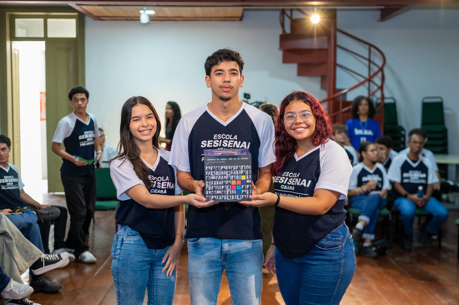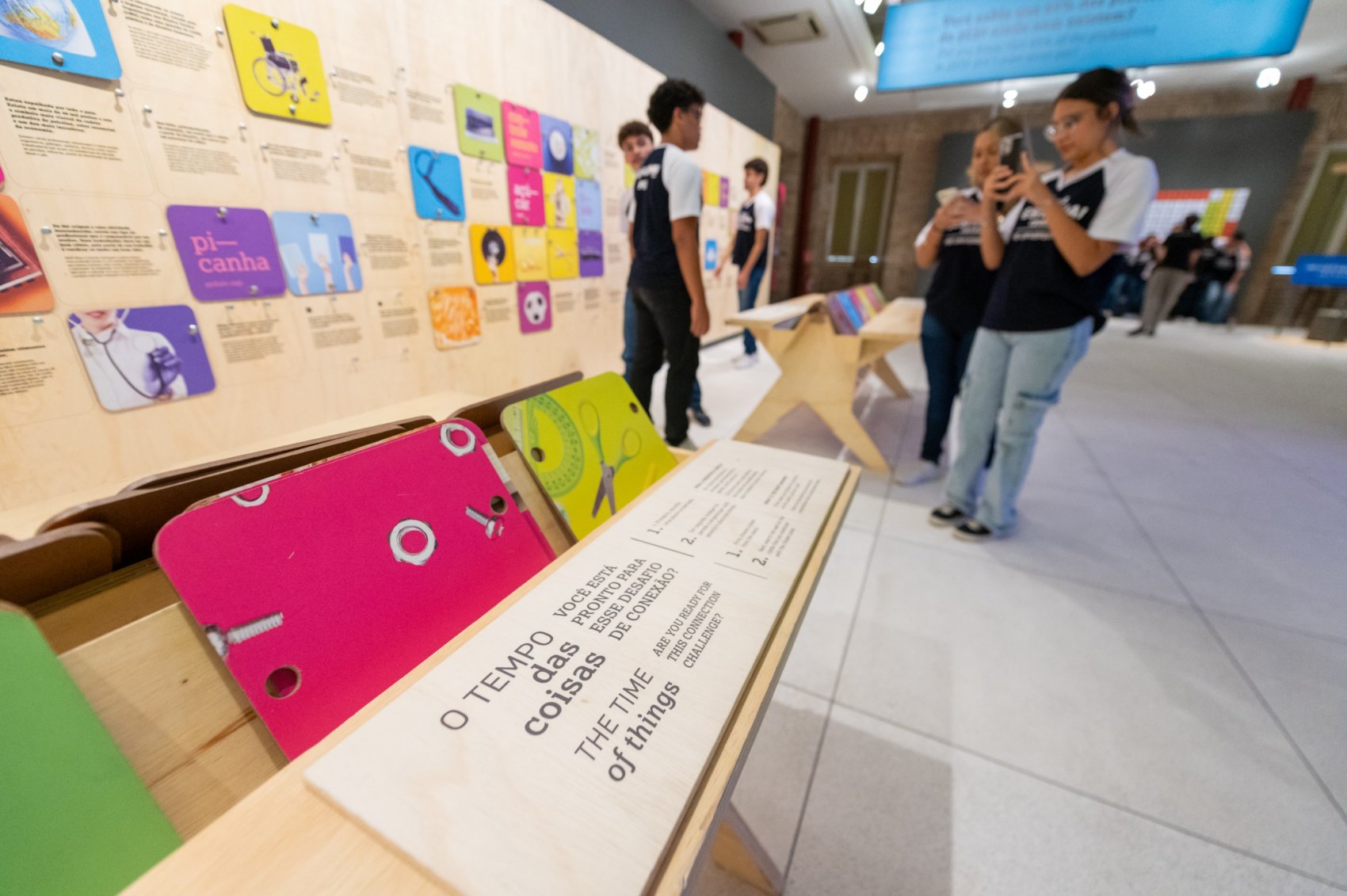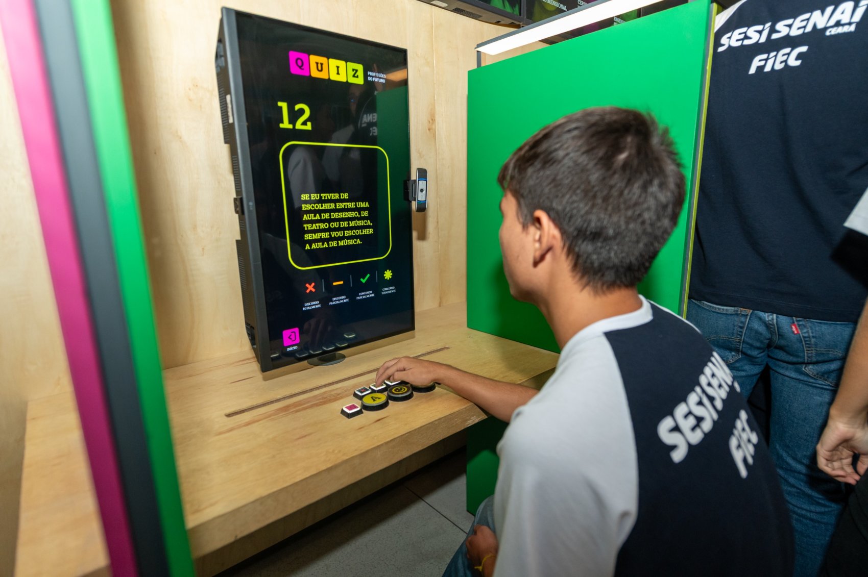 Durante a abertura, estudantes do 3º ano do Ensino Médio da Escola SESI de Referência Roberto Proença de Macêdo puderam visitar os espaços da exposição e participar de uma dinâmica intitulada “Cápsula do Tempo: Meu Eu no Futuro”, na qual foram convidados a refletirem sobre suas trajetórias pessoais e profissionais para os próximos anos, a partir das provocações apresentadas em “O Futuro das Profissões”.